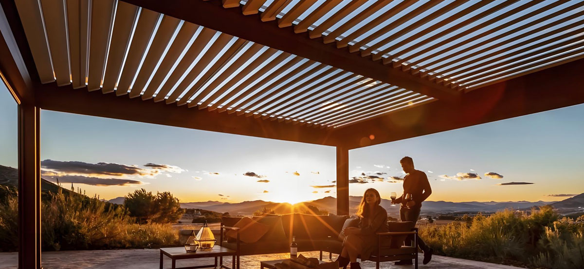 Bioclimatic technology allows you to enjoy the outdoors all year round. The louvered roof is motorized to open and close to promote air circulation, and the louvered pergola provides completely natural ventilation.