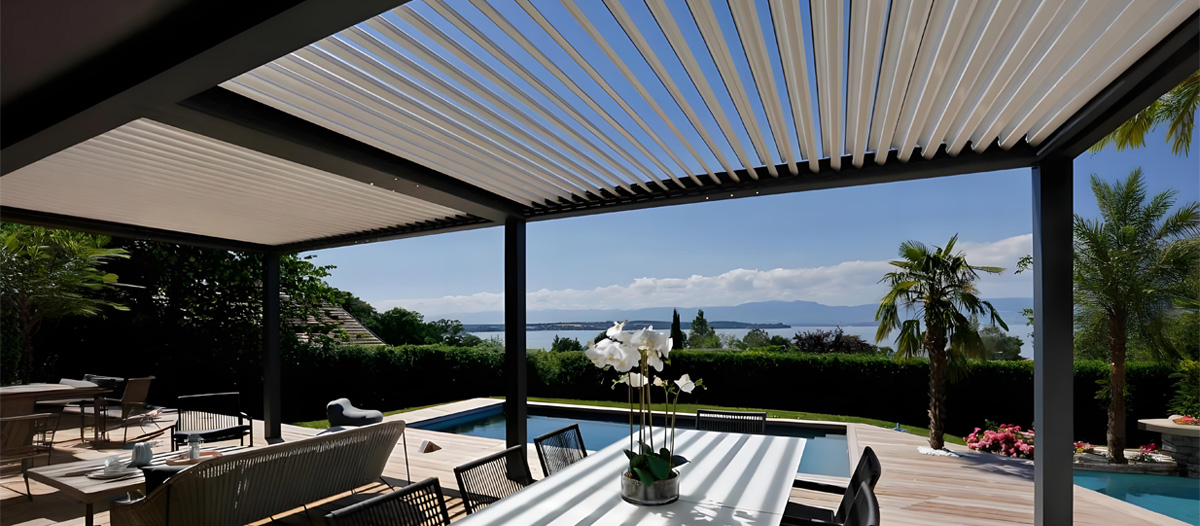 Bioclimatic technology allows you to enjoy the outdoors all year round. The louvered roof is motorized to open and close to promote air circulation, and the louvered pergola provides completely natural ventilation.