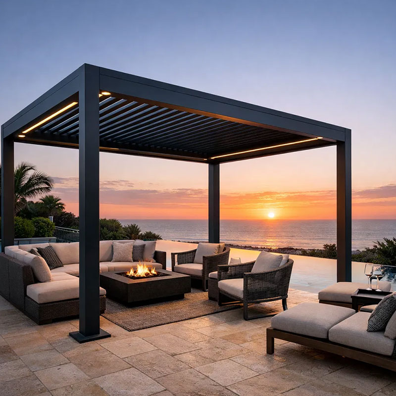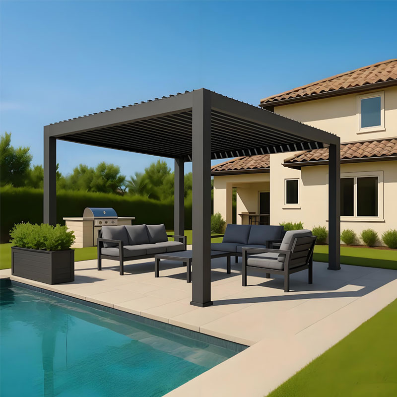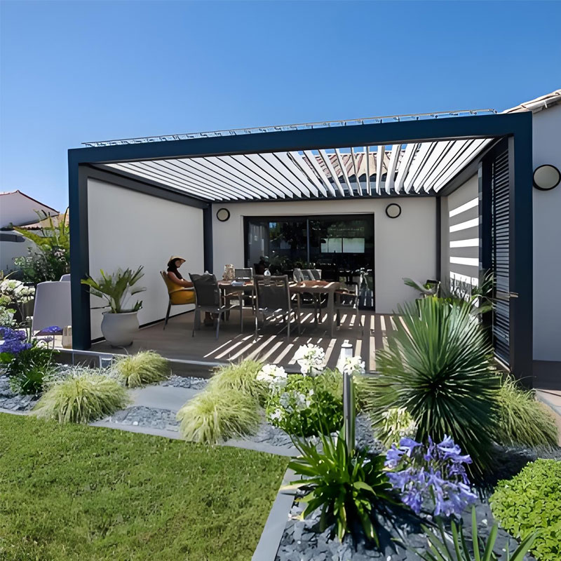 AMS aluminum pergola for sale, customize your own aluminum pergola kit for your outdoor space. Made in China, we support global delivery and door-to-door delivery.