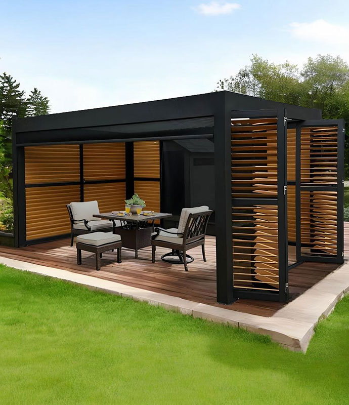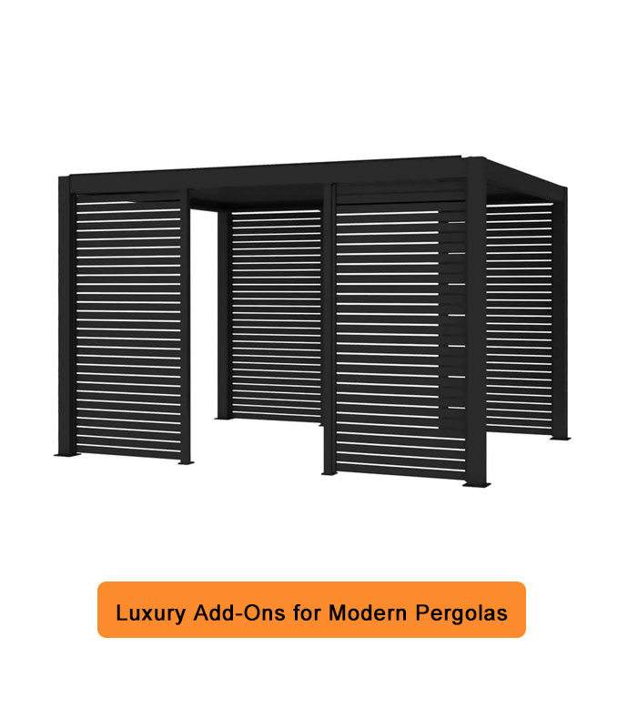 The Privacy Shutter is made of durable 6005-T5 aluminum with a natural, modern look that complements your Pergola. It blocks wind, protects privacy, and can be customized in color and style. Pre-drilled for easy installation, AMS available as shutter panels, sliding doors, or folding doors, combining convenience, weather resistance, and style for your outdoor space.