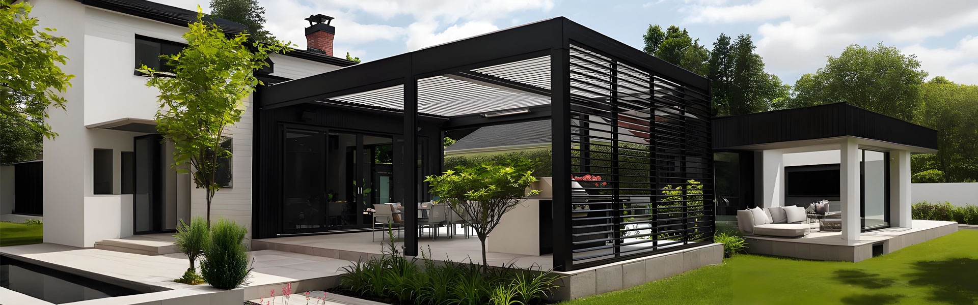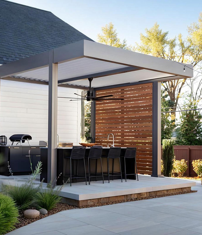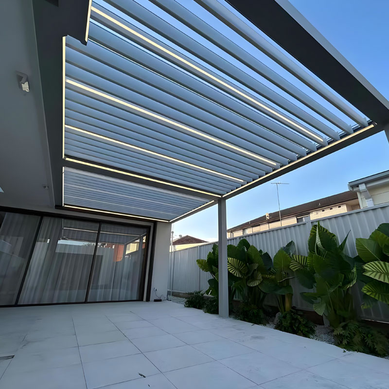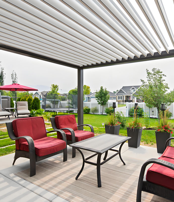 Our Aluminum Louver Panels are a perfect match for your Pergola, offering superior waterproof and ventilation performance. They are available in fixed (adjustable spacing), manual, or motorized system. Providing privacy, sun shading, and light control, they are also aesthetically pleasing, modern, and weather-resistant. Flexible installation and customizable colors, blade angles, and sizes make it ideal for your pergola area.