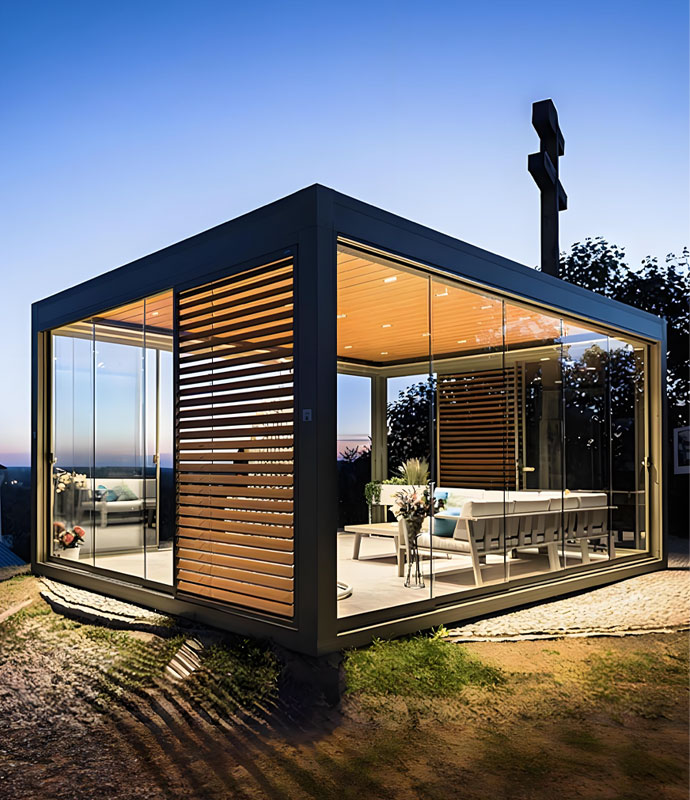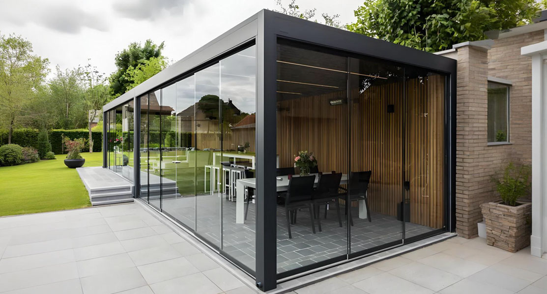 Glass Walls combine timeless elegance with superior protection. High-quality tempered safety glass shields against wind and rain while maintaining a bright and open feel, blending functionality with aesthetic appeal. Frameless panels are 10mm thick, framed panels are 8mm, and the tracks feature built-in drainage to prevent water accumulation. We offer sliding, folding, and upgraded glass window systems designed for year-round use, providing stability and durability—perfect for creating a sunroom effect.